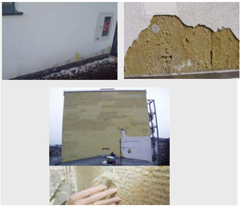 ■滲漏時,不合格巖棉吸水膨脹,破壞體系的耐久性